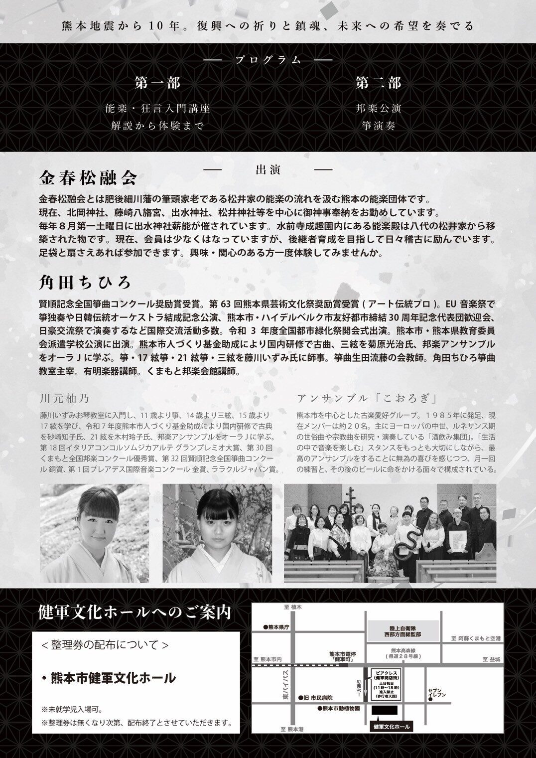 | 入場無料(全席自由・要整理券) ※整理券は熊本市健軍文化ホールにて配布いたします |