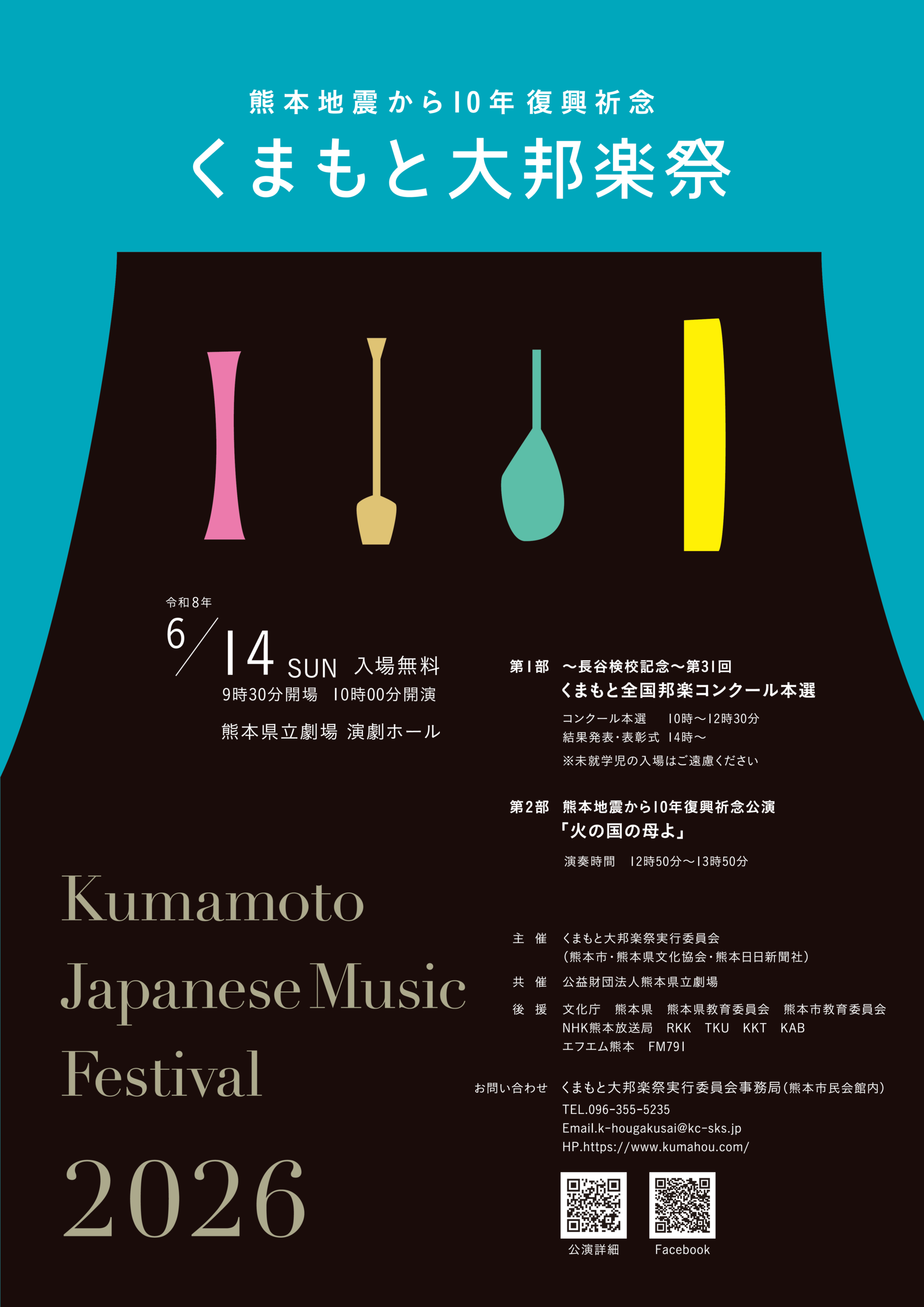 | くまもと大邦楽祭実行委員会事務局(熊本市民会館内)TEL:096-355-5235 |